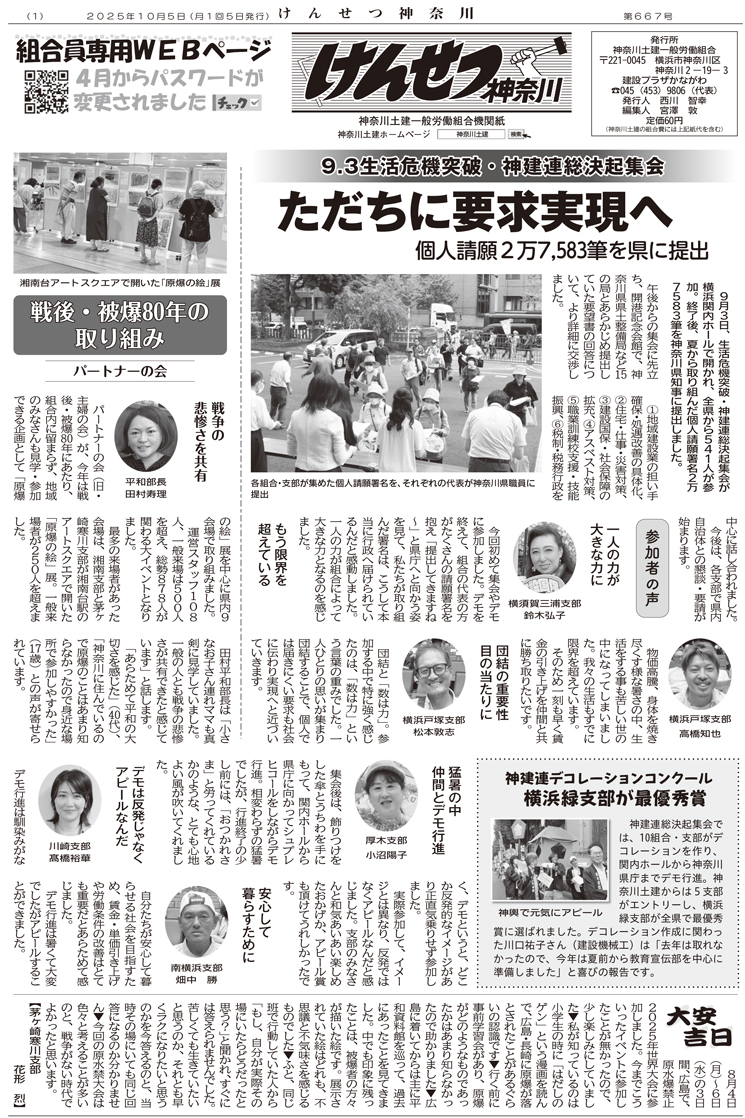 労働組合の機関紙は、組合と組合員を結ぶ重要なアイテムです。建設従事者として働くすべての組合員に組合の取り組みや方針を提供する。理解を広め、一人でも多くの活動参加者を目指します。